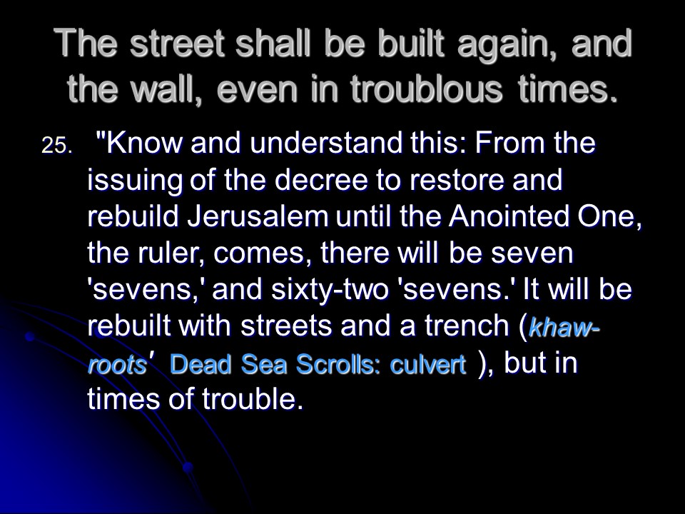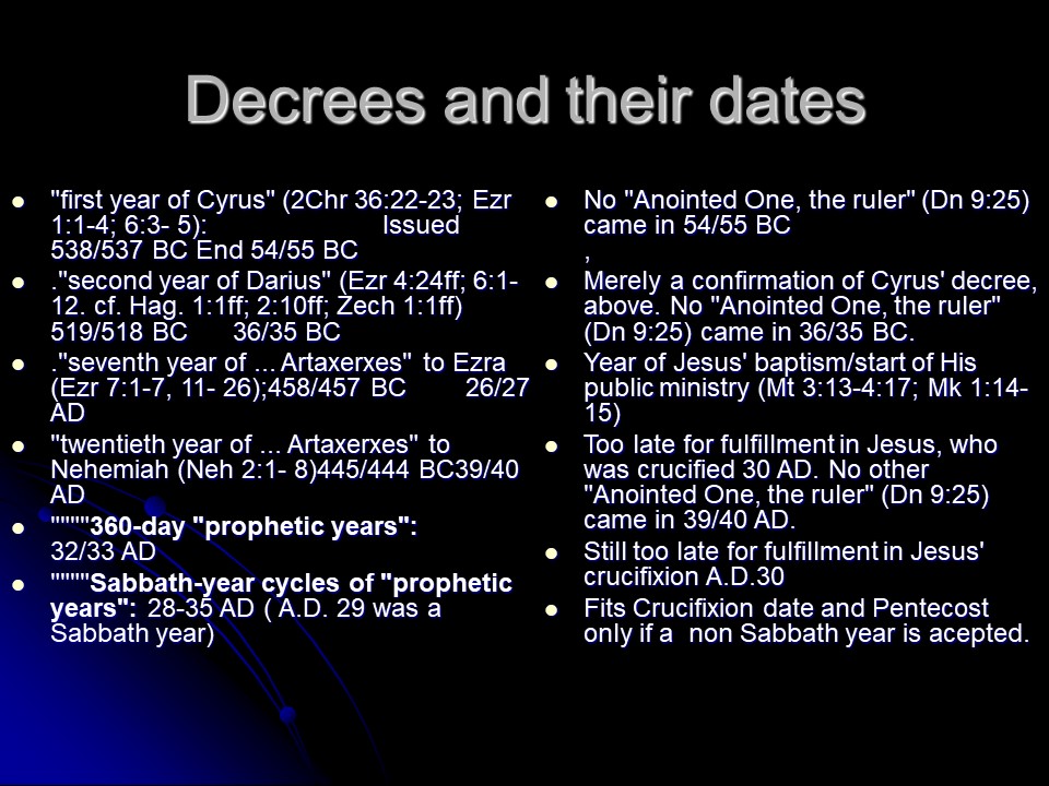 Many are they who have tried to calculate the day of the return of Jesus Christ. The decree to rebuild Jerusalem was recorded four times in the Bible.