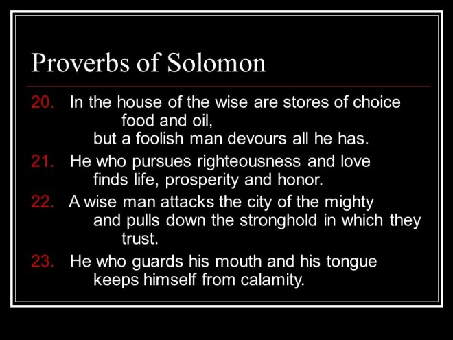 Proverbs 21, Proverbs of Solomon. Yes, there is a difference between a wise and righteous man, and an evil, foolish and lazy man, thinking only about himself and his pleasures, and “It is better to dwell in the wilderness, than with a contentious and an angry woman.”