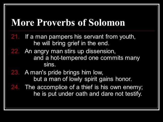 Proverbs 29, more proverbs of Solomon; and yes, they still deal with the superiority of wisdom and righteousness over folly and wickedness.
