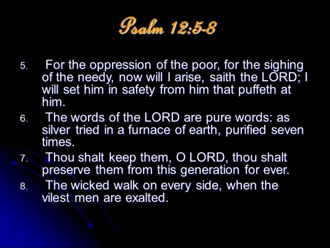 With all the double speak today, Psalm 12 is especially valid. The Lord has something to say about that.
