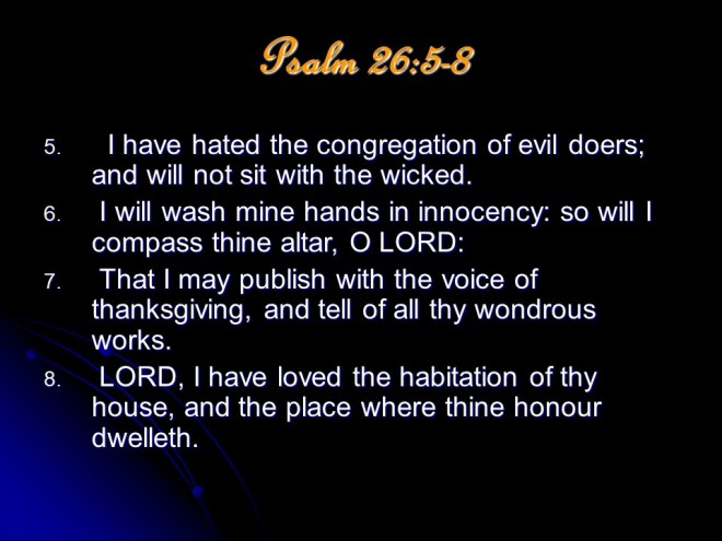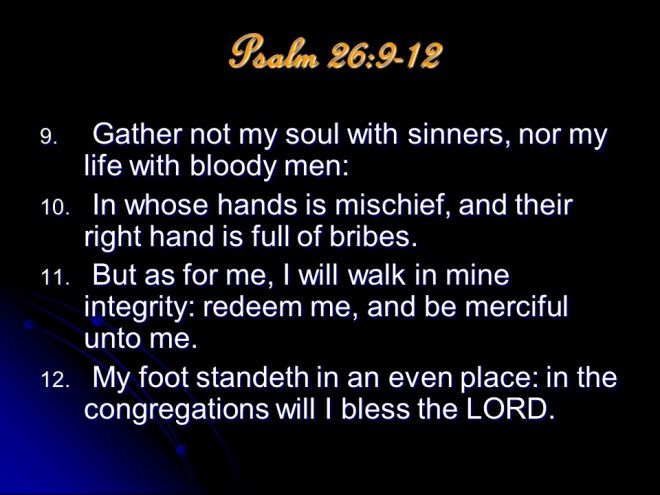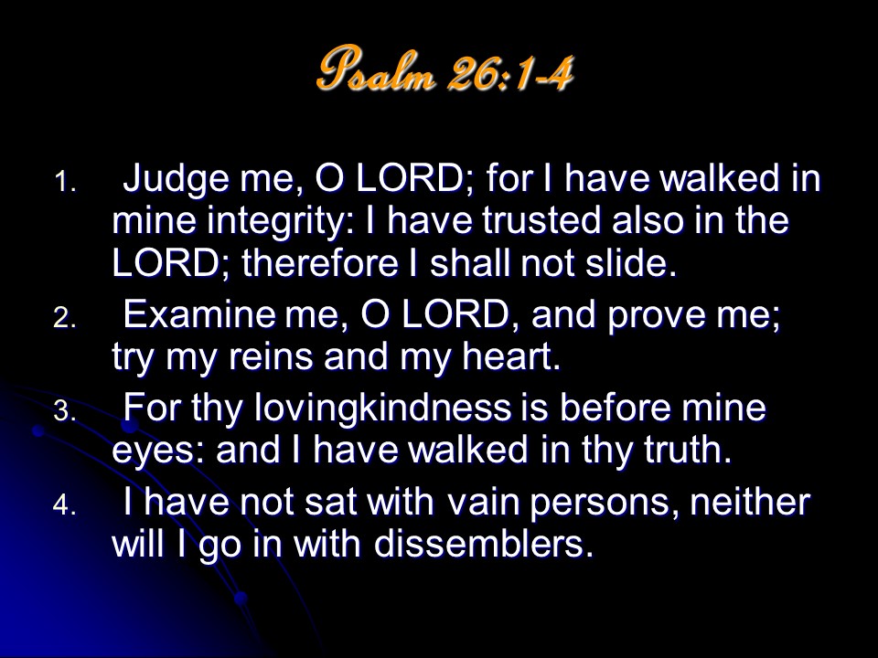 Psalm 26, of David. A Psalm where David asked God to judge him on his merits based on faith.