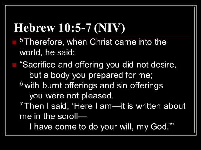 Psalm 40, of David. It speaks of the servant that comes to do God’s will. David attributed this to himself, but it is spiritually a messianic Psalm.