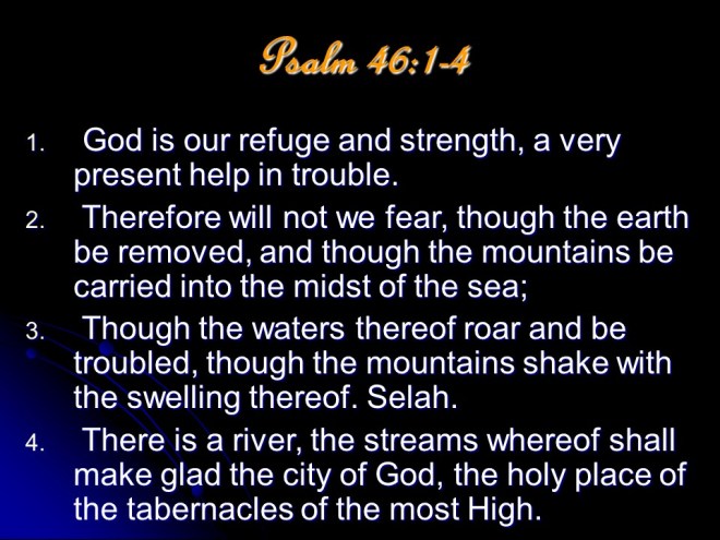 Psalm 46. Of the Sons of Korah. “Let us sing the forty-sixth psalm in concert; and then let the devil do his worst.” (Martin Luther)