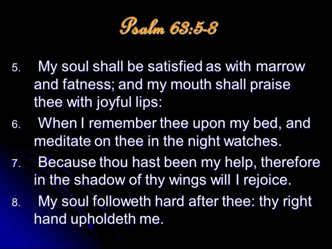 Psalm 63, of David. Seek God early, praise Him, this is better than life, praise Him.