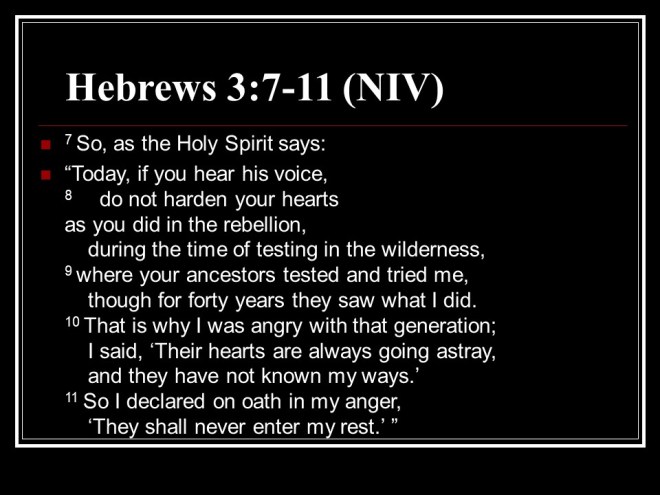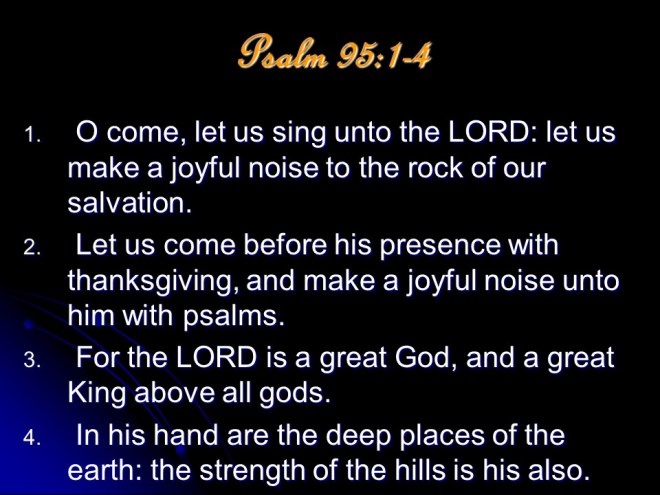 Psalm 95 is a song of praise to God, but also a warning that they should not harden their hearts as they did in the wilderness and thus were not allowed to enter God’s rest.