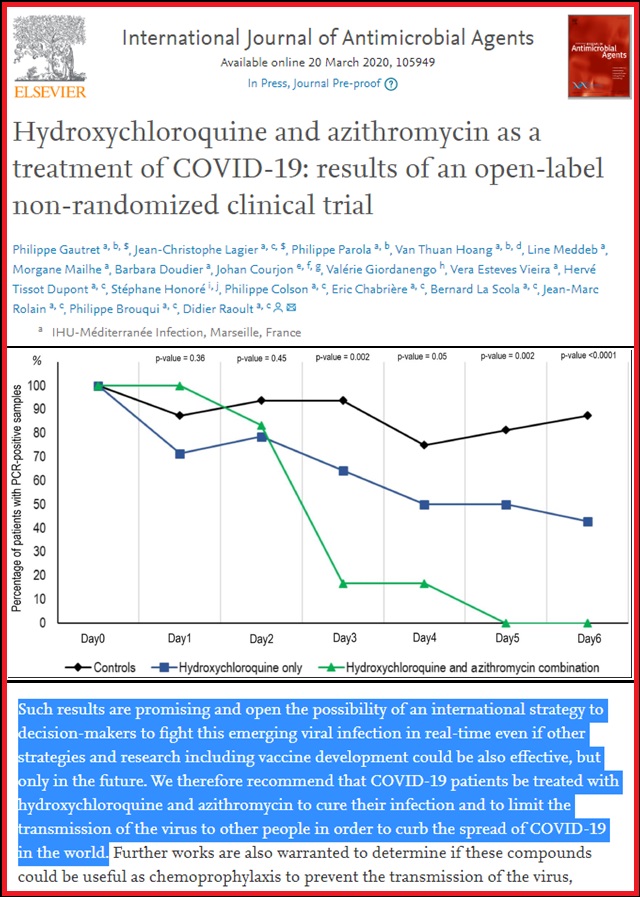 But it is getting worse. the COVId-19 virus hit China bad, probably in November or so, nobody knows and China won’t tell. Then they told us there was a small outbreak, but it is not contagious from person to person. Then on January 10 the first case of the Wuhan virus hit the U.S.A. Late January President Trump halted entry into the U.S. from foreigners having been in China recently. At one of the daily COVID-19 briefings President Trump got excited about a potential treatment. He had been shown the result of a french study. Here it is: