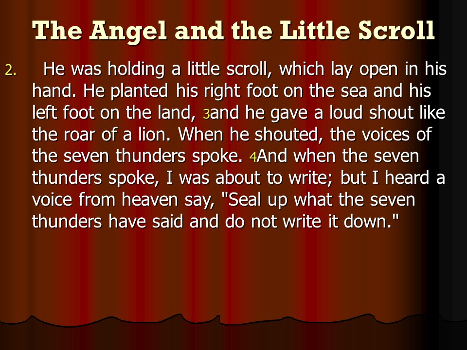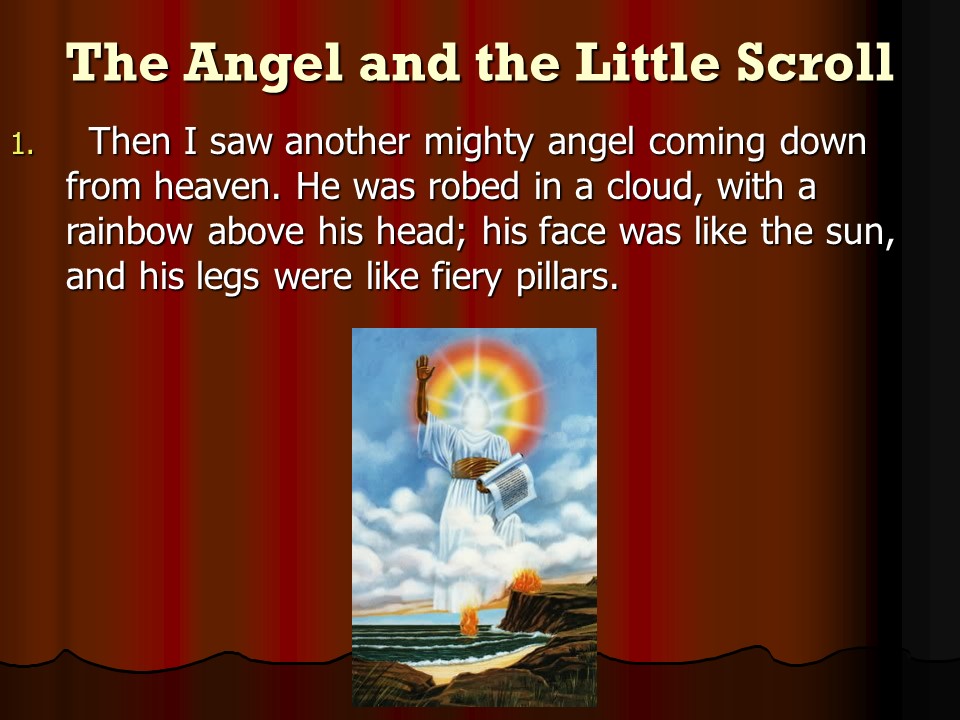 Revelation 10 tells of the mighty angel and the little book. The angel announced there would be no more delay, and by the time of the seventh trumpet all will be set in motion. John is told to eat the little book, and then he was told to prophesy again.