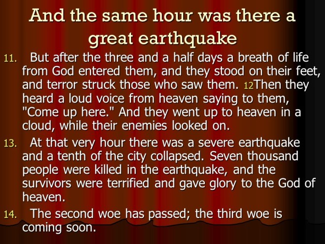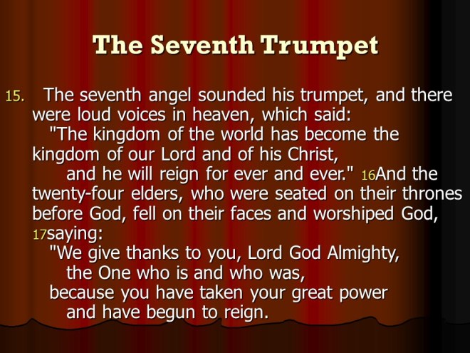 Revelation 11 tells of the two witnesses, their power, death and resurrection. After that the seventh trumpet sounded and the Kingdom was proclaimed.