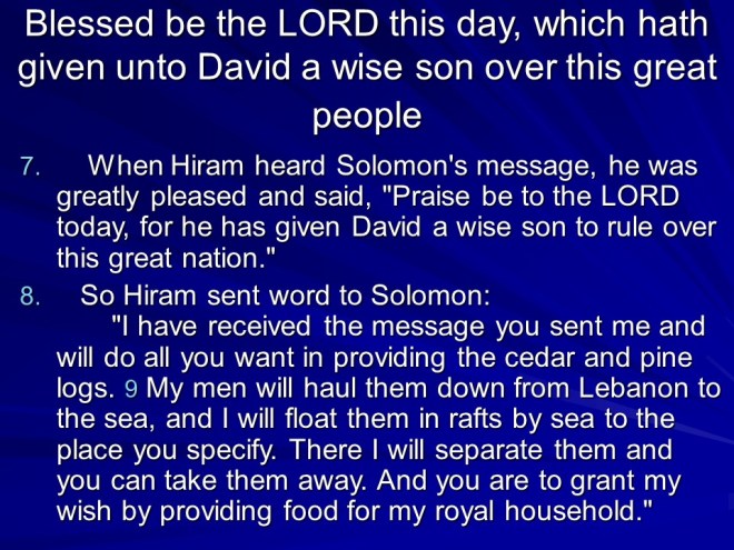 1 Kings 5, Solomon Prepares to Build the Temple.