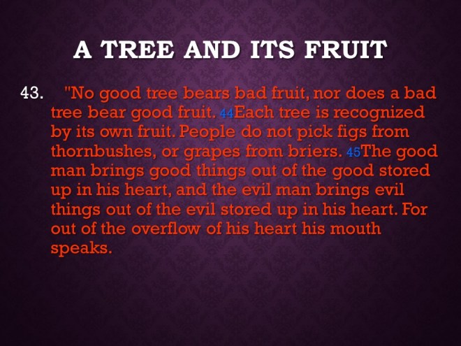 Luke 6:17-49. Luke recorded a shorter version of the Beatitudes than is found in the gospel of Matthew. Jesus added: Love your enemies, do not judge, a tree is known by its fruit, and finally he told the parable of the foolish and the wise builder.