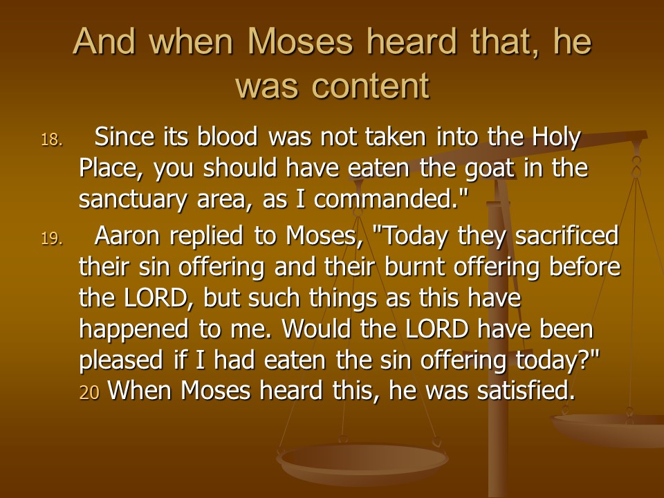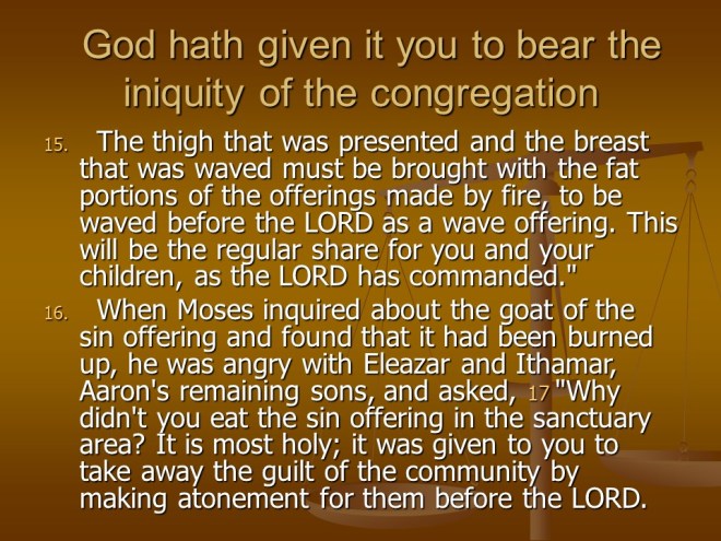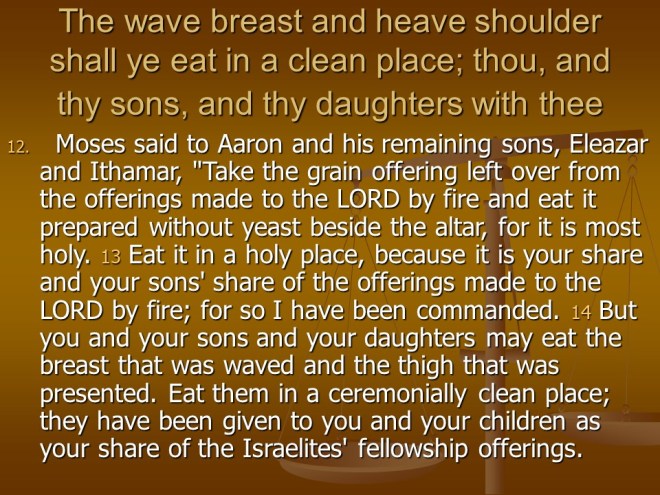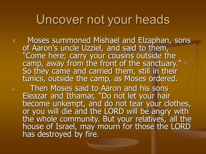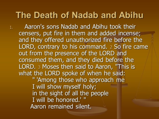 And in Leviticus 10 two of Aaron’s sons were killed by fire for violating the command of God. But Aaron’s uncle had two sons and together with two other sons of Aaron they became the new priests and the rest of the chapter deals with how they should behave.