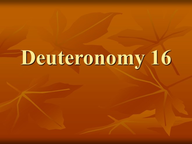 Deuteronomy 16, The Passover, The Feast of Weeks, The Feast of Tabernacles, Justice Administered.