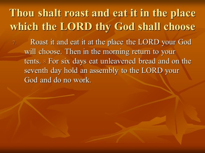 Deuteronomy 16 describes in detail how to celebrate the Passover, the Feast of Weeks and the Feast of Tabernacles. Bring an offering, no one can go empty handed. Appoint Judges so justice can be properly administered. Do not worship any Asherah poles ever.