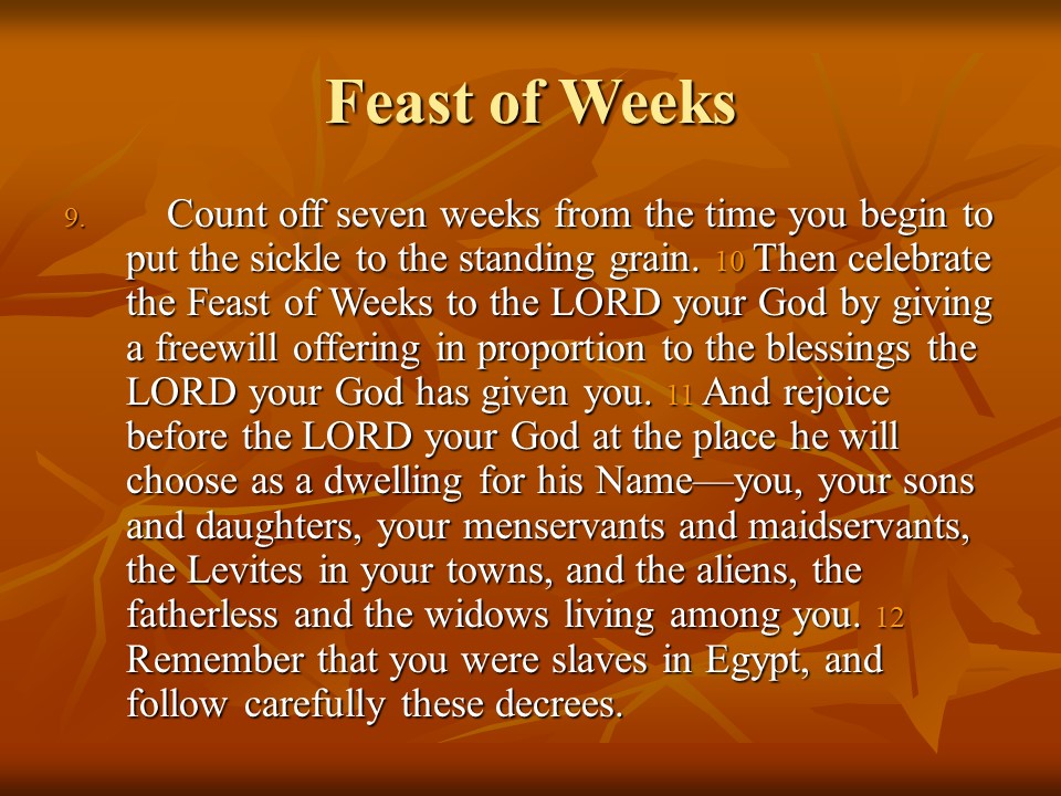 Leviticus 23 describes the feasts of the LORD, the Sabbath, the Passover, the Feast of Unleavened Bread, the Feast of Firstfruits, the Feast of Weeks, the Feast of Trumpets, the Day of Atonement and the Feast of Tabernacles.