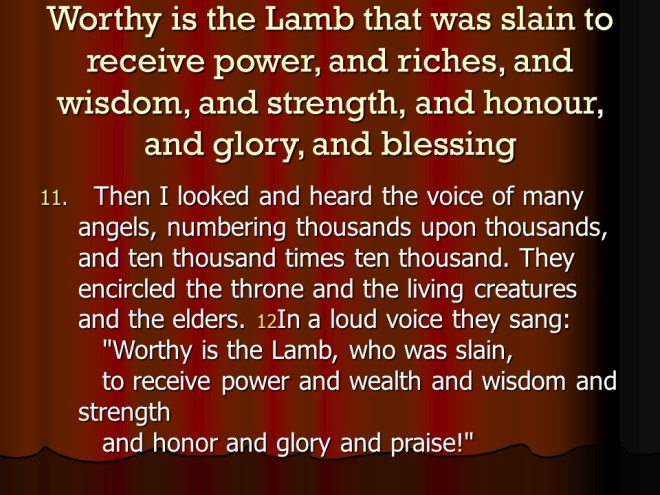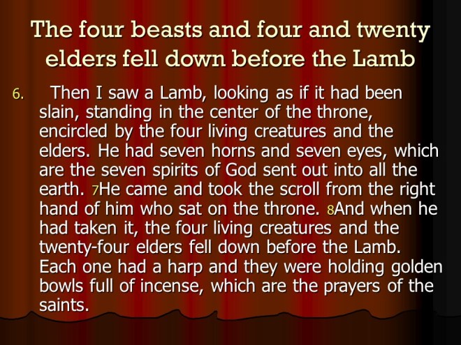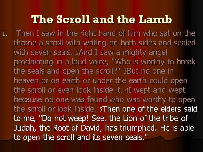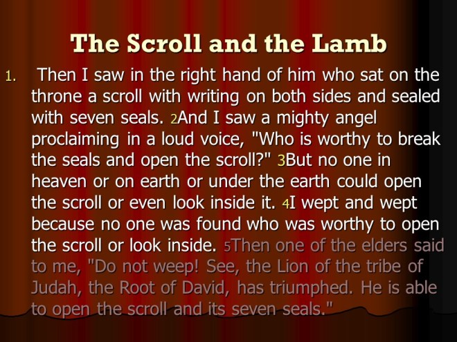 Revelation 5, The Lamb takes the Scroll, Worthy is the Lamb.