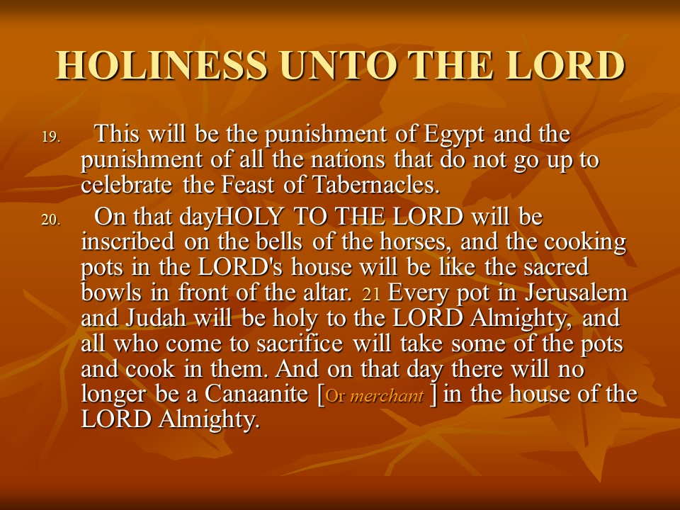 Zechariah 14 is the great chapter of the second coming of Christ, here presented as the Day of the LORD, declared HOLINESS UNTO THE LORD.