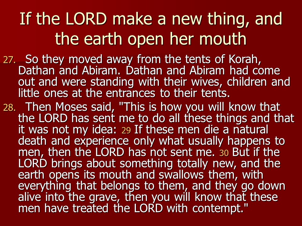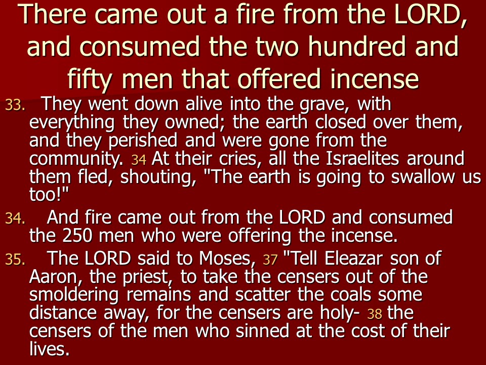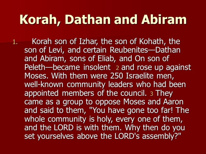 In Numbers 16. Korah, Dathan and Abiram as well as 250 other men rose up in opposition to Moses. It did not turn out well for them.
