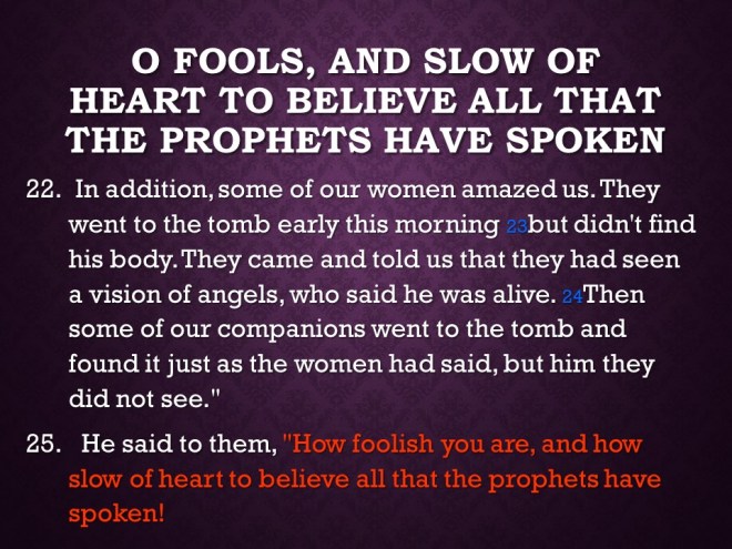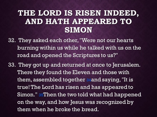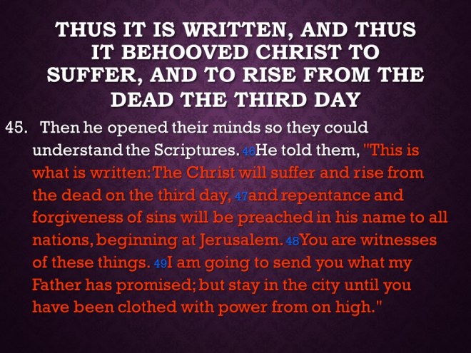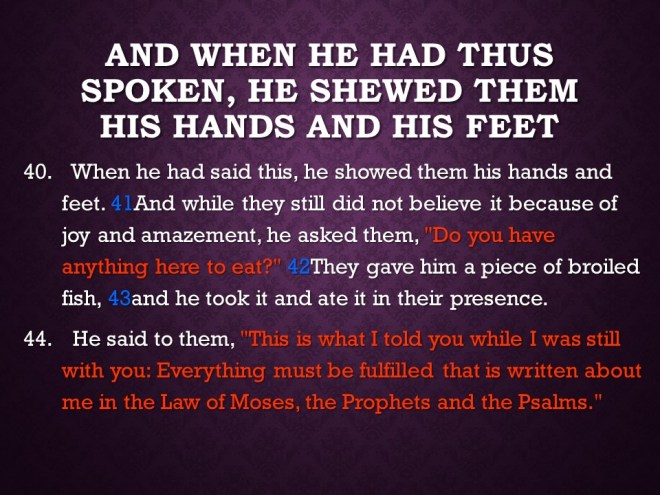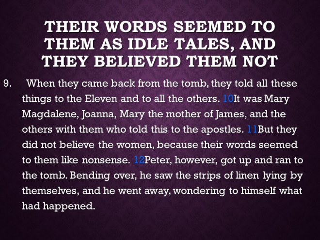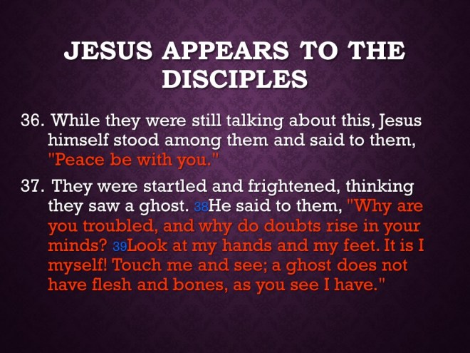 John 20 deals with the resurrection, and Jesus was not there, only his grave clothes, strips of cloth, not the “Turin Shroud.” It was the first day of the week and Jesus showed himself to all the disciples except Thomas. He doubted their testimony, and it is from this we have the expression “Doubting Thomas.” Later, when even he saw Jesus, he bowed down and worshiped him saying “My Lord, and my God”. Jesus also gave the promise they would receive the Holy Spirit.