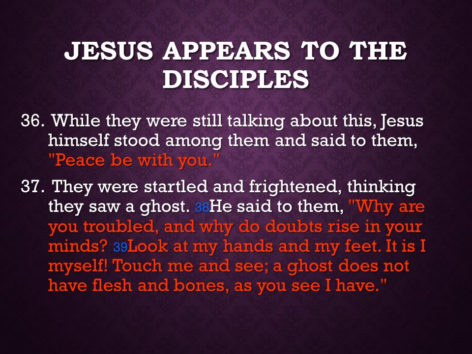 John 20 deals with the resurrection, and Jesus was not there, only his grave clothes, strips of cloth, not the “Turin Shroud.” It was the first day of the week and Jesus showed himself to all the disciples except Thomas. He doubted their testimony, and it is from this we have the expression “Doubting Thomas.” Later, when even he saw Jesus, he bowed down and worshiped him saying “My Lord, and my God”. Jesus also gave the promise they would receive the Holy Spirit.