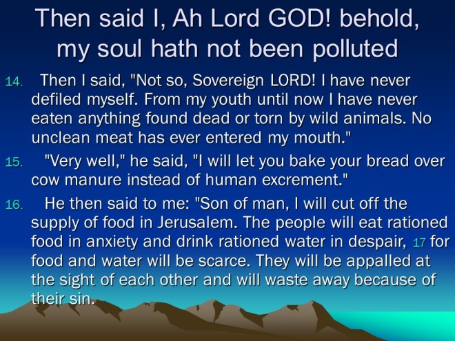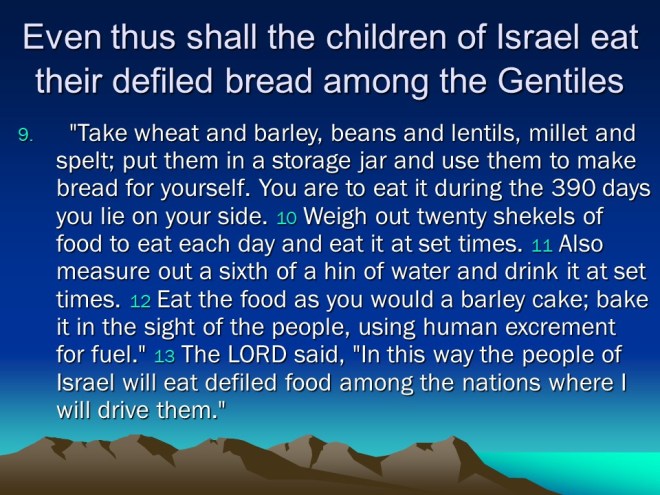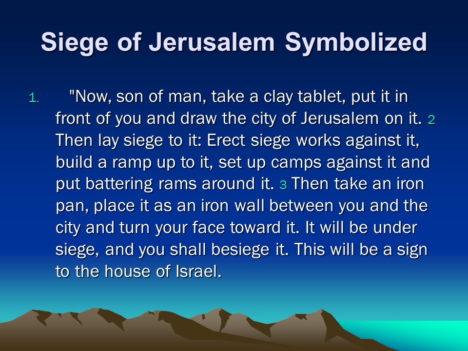 Ezekiel 4. Ezekiel was told by God to portray the siege of Jerusalem.