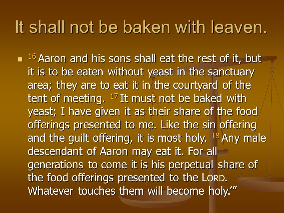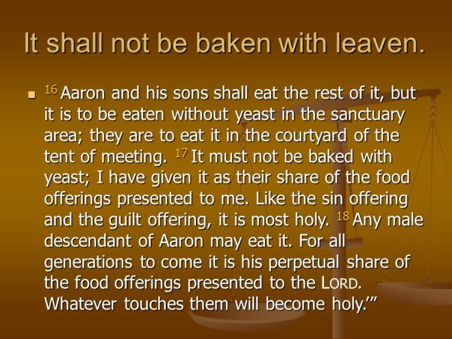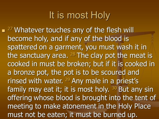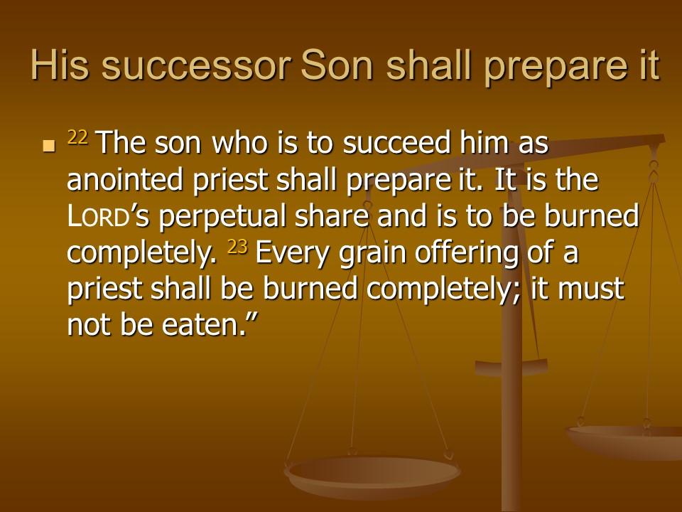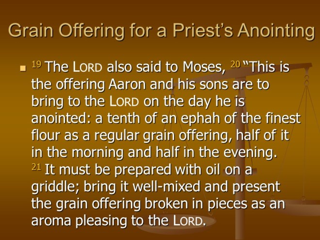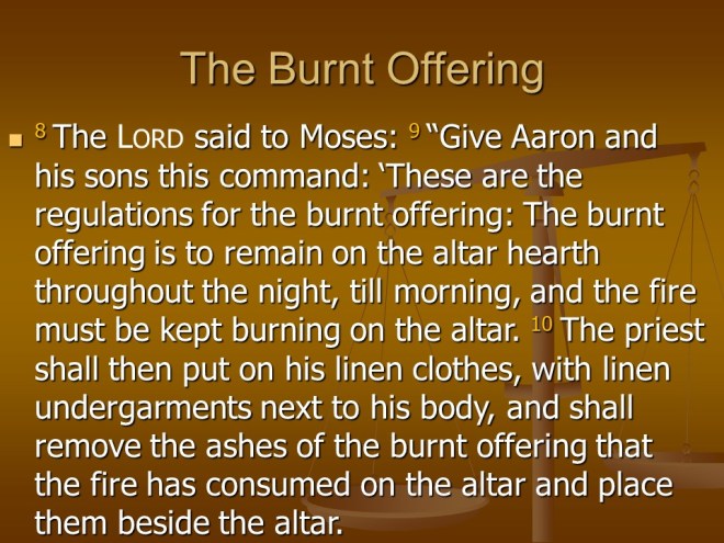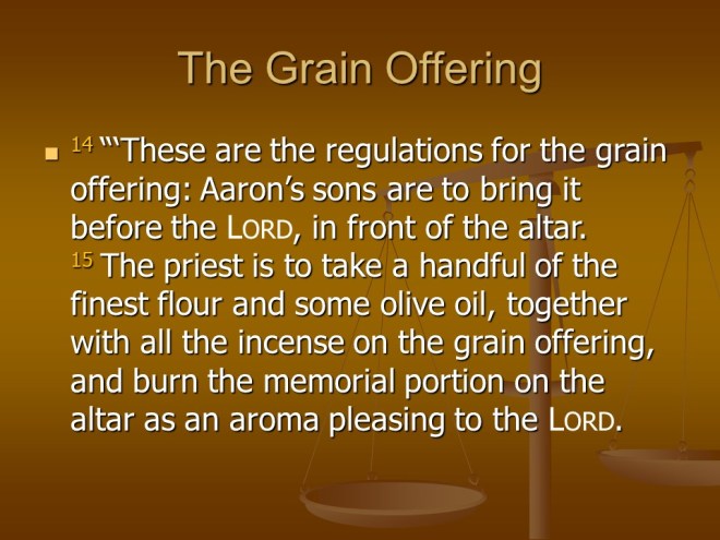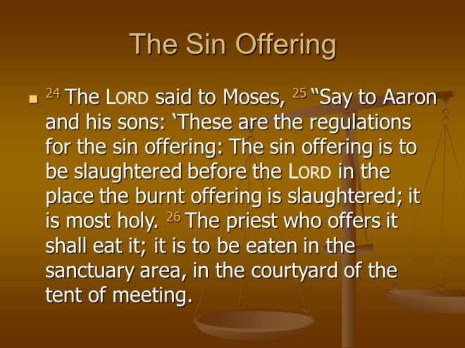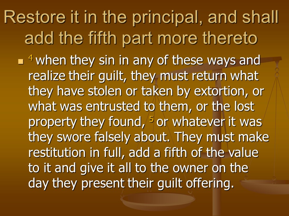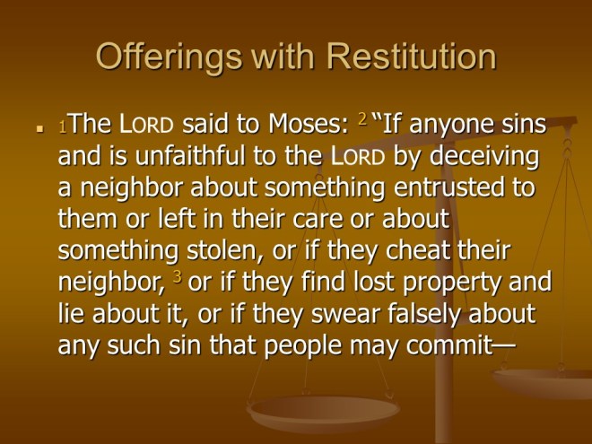 Leviticus 6 tells of the restitution necessary in the burnt offering, the grain offering and the sin offering,