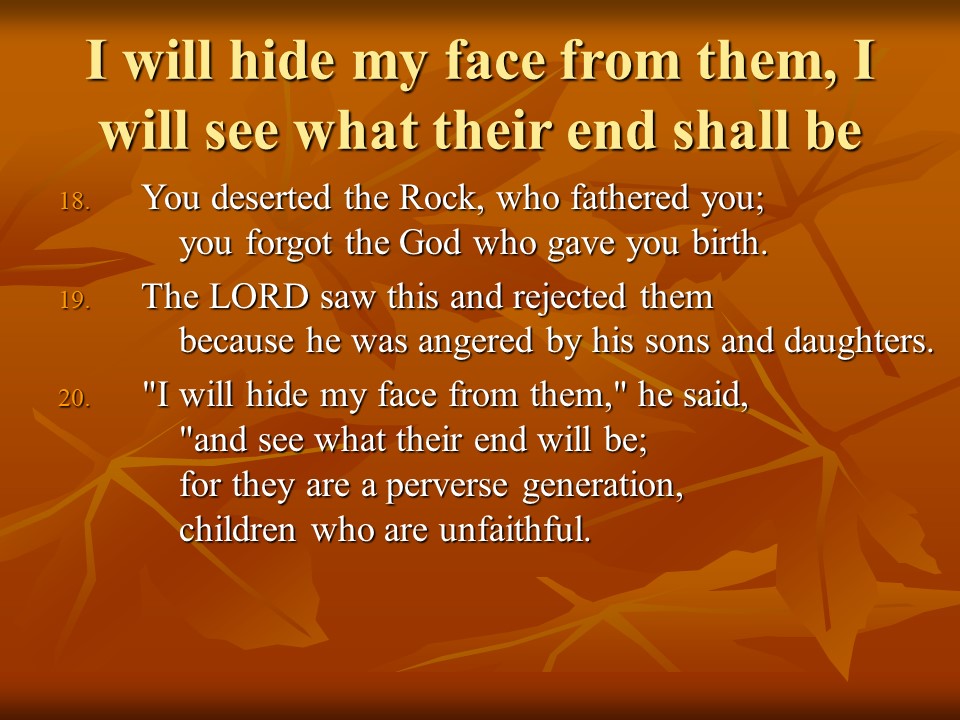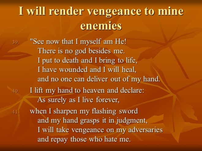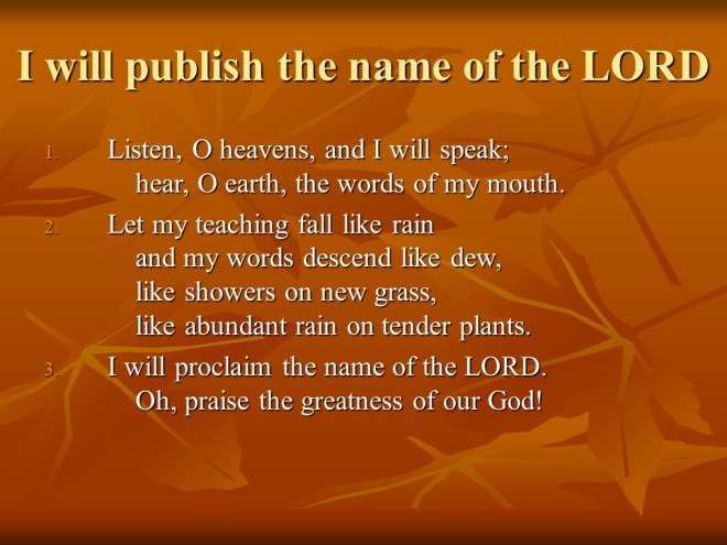 Deuteronomy 32 gives us the Song of Moses. At the end of the chapter the Lord told Moses  he would only see the promised land from a distance and die on Mount Nebo.