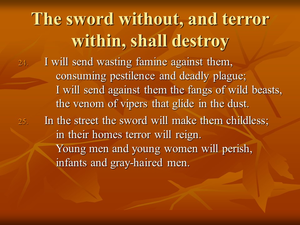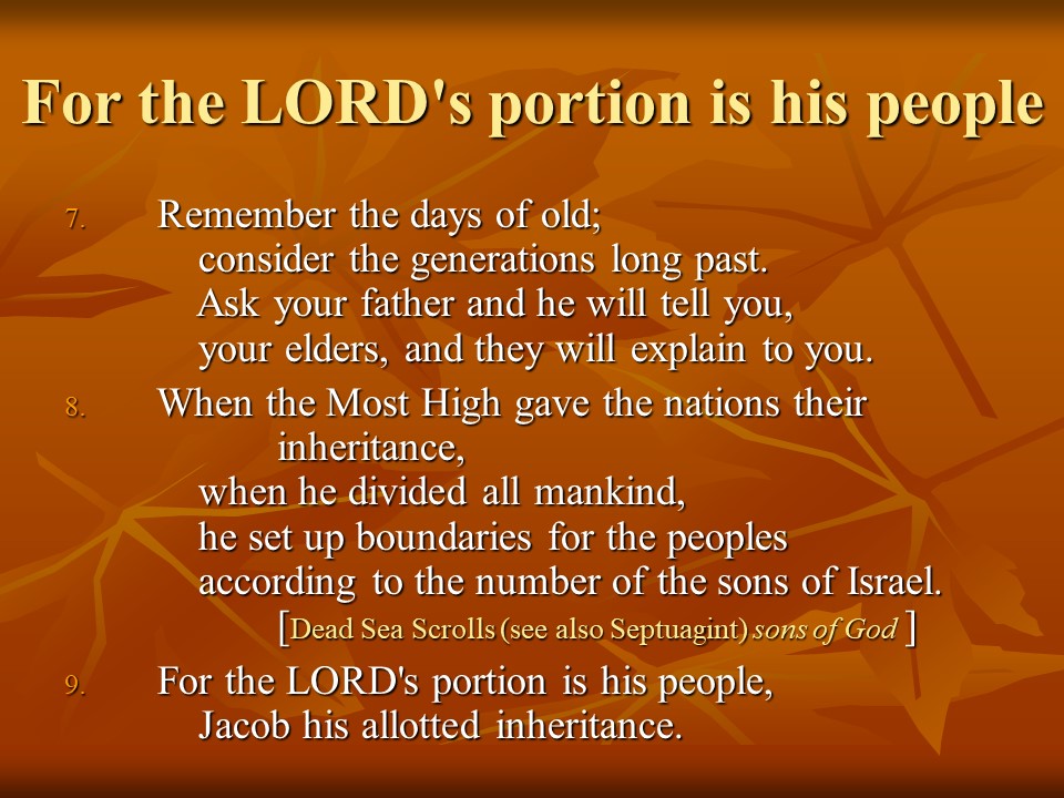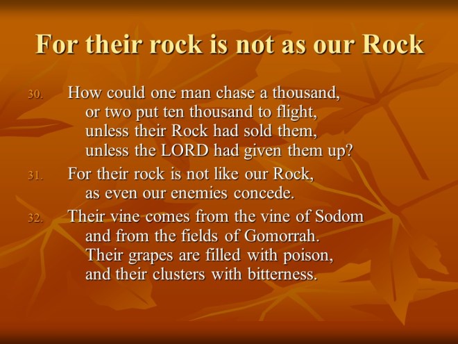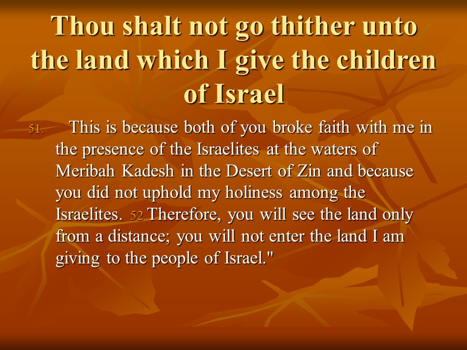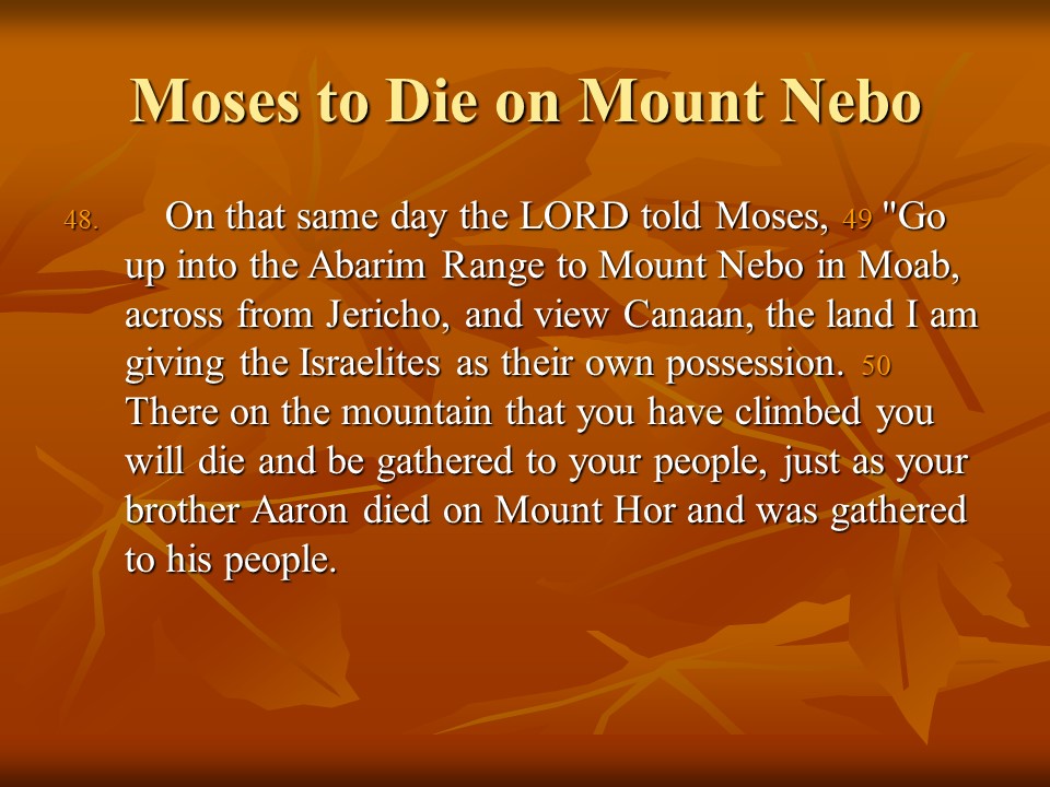 Deuteronomy 32 gives us the Song of Moses. At the end of the chapter the LORD told Moses he would only see the promised land from a distance and die on Mount Nebo.