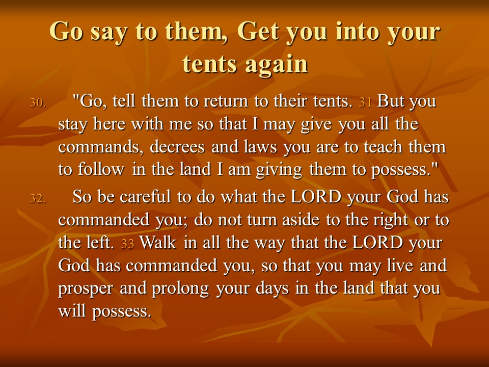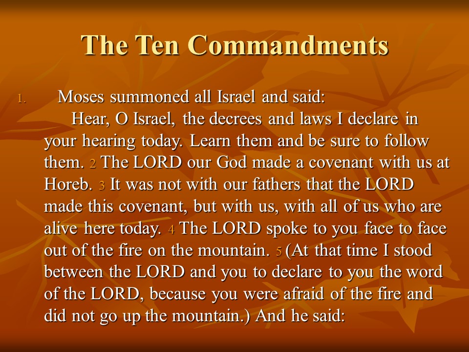 In Deuteronomy 5 the Ten Commandments are enumerated a second time, the first time was in Exodus 20. The people were afraid of God’s presence, horrified but not in reverential fear.