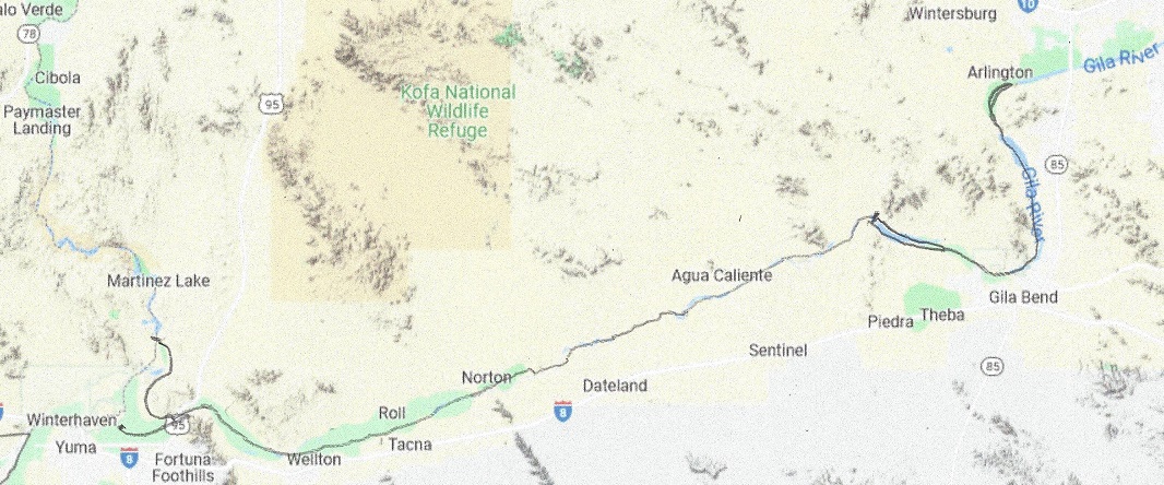 This leg will start with a free-flowing Gila River for 30 miles, followed by the painted Rock Reservoir for 20 miles, the Painted Rock Dam.