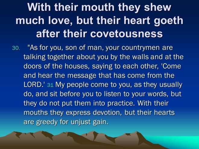 Ezekiel 33. The prophet took the role of the watchman and gave a message about God’s Judgment and it’s fairness, he foretold of the fall of Jerusalem and the cause of Judah’s ruin, claiming they were hearing but not doing and that they were still continuing their sinful acts.