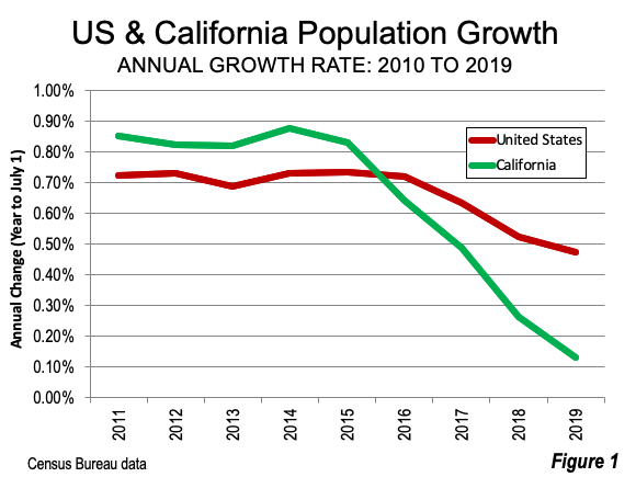 California is no longer a growing state. The population may even be declining in 2020. See this chart: