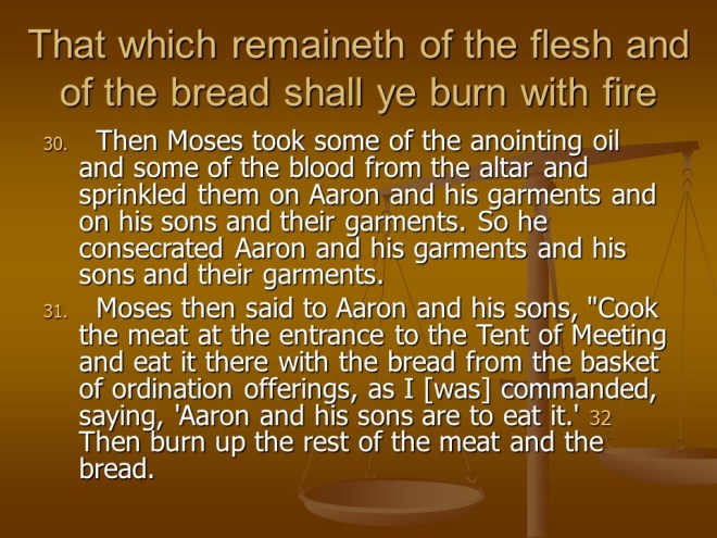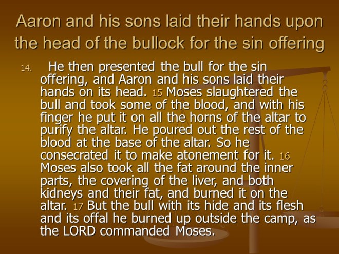 Leviticus 8, the Ordination of Aaron and his Sons.