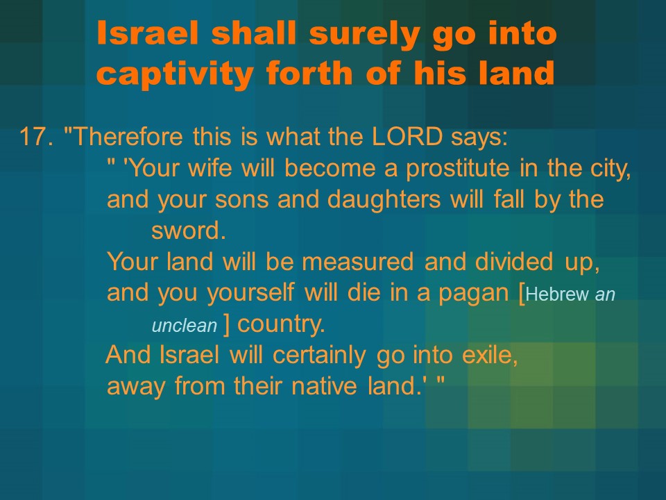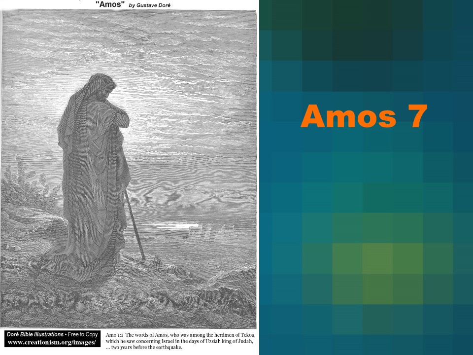 Amos 7. The prophet had a vision of the Locusts, a vision of fire and a vision of the plumb Line. Amaziah told Amos not to prophesy bad things, but that is why Amos, a poor shepherd, was called.