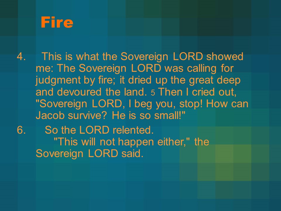 Amos 7, Vision of the Locusts, Vision of the Fire, Vision of the Plumb Line, Amaziah’s Complaint.