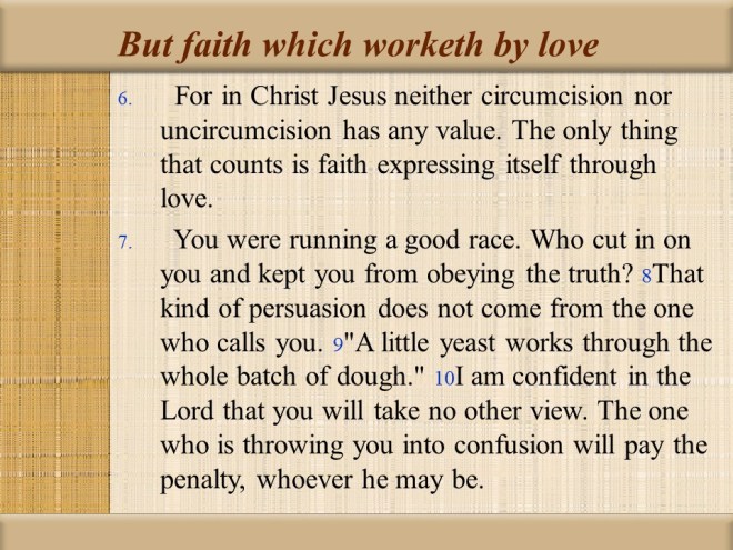 Galatians 5: 16-25. “ Stand fast therefore in the liberty wherewith Christ hath made us free, and be not entangled again with the yoke of bondage.” The Apostle Paul spoke of christian liberty, love fulfills the law and is accomplished by walking in the spirit.