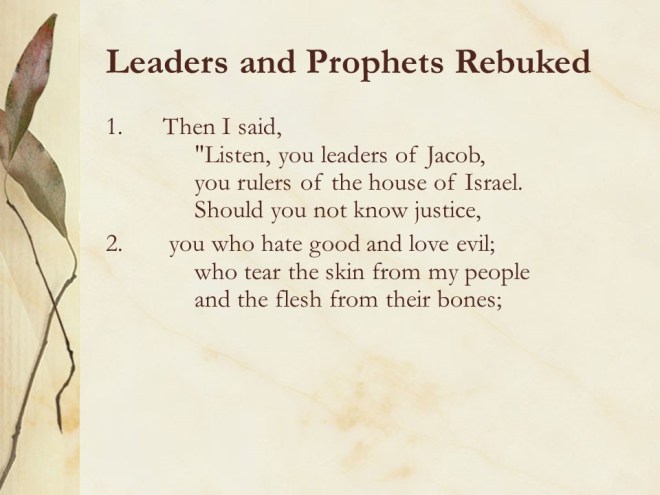 Micah 3. There was wicked rulers and wicked prophets. Micah still had full confidence in God.