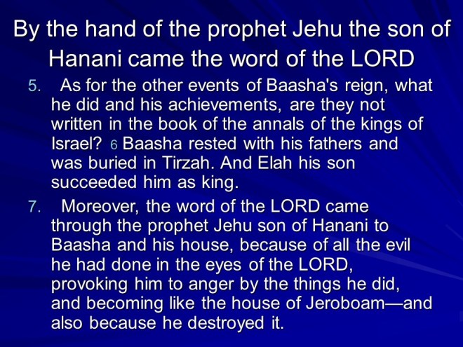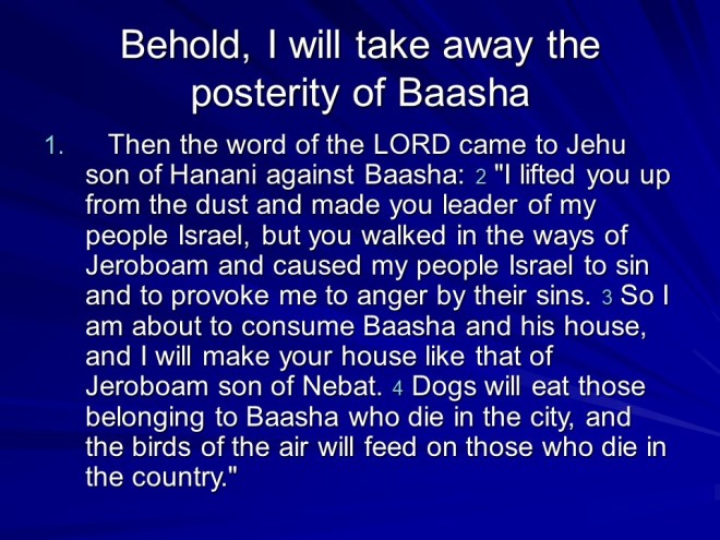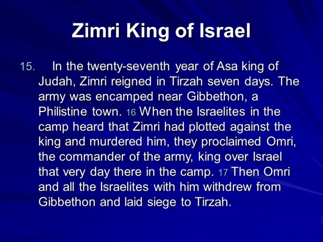 1 Kings 16 displays a depressing list of kings over Israel, Baasha, Elah, Zimri, one worse than the other, finally culminating with Ahab, the worst of them all, setting up Baal worship in Israel.