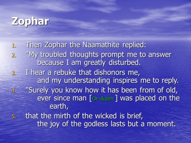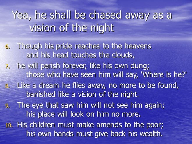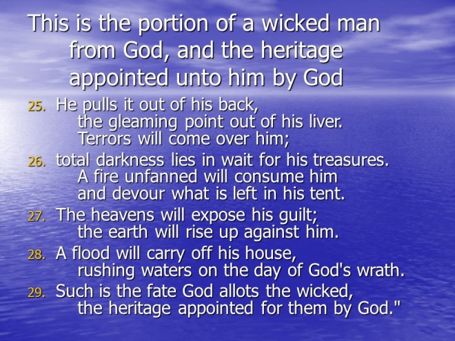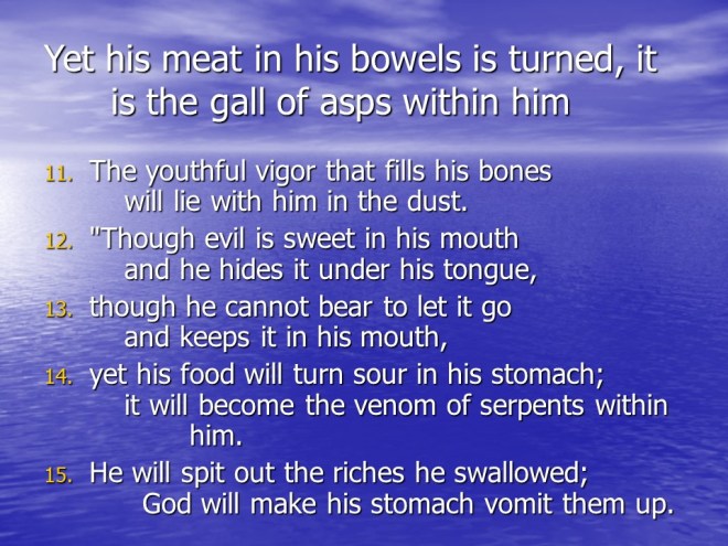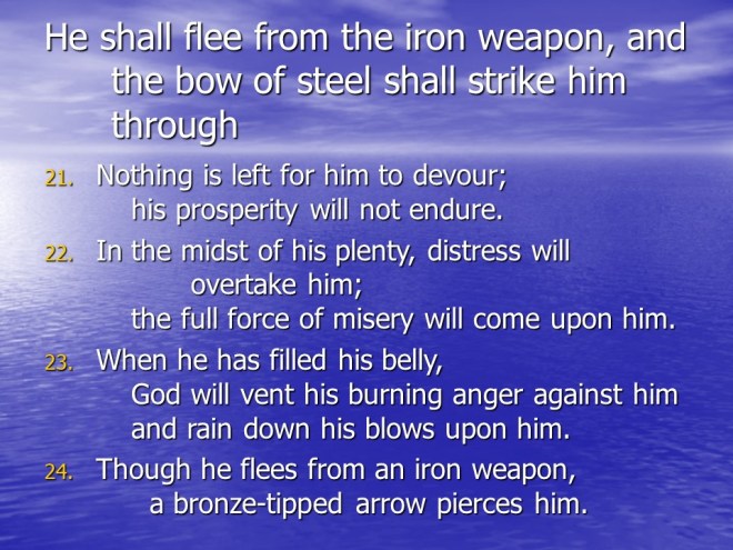 Job 20, Zophar’s Sermon on the Wicked Man.